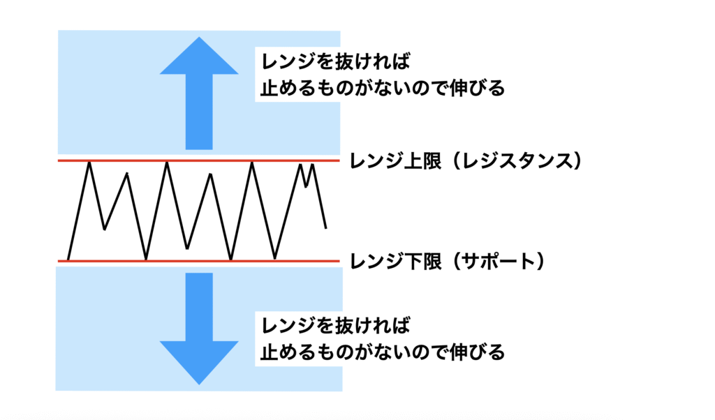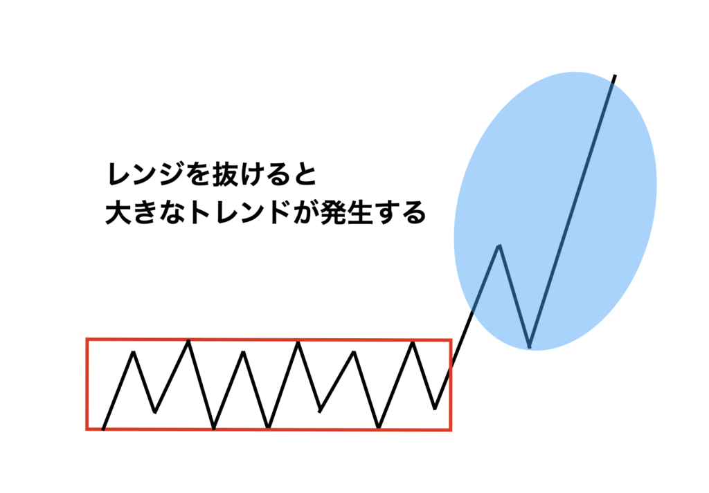 レンジ内ではどちらに動くか決めきれず、ブレイクによって初めて市場のコンセンサスが固まります。