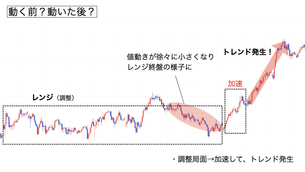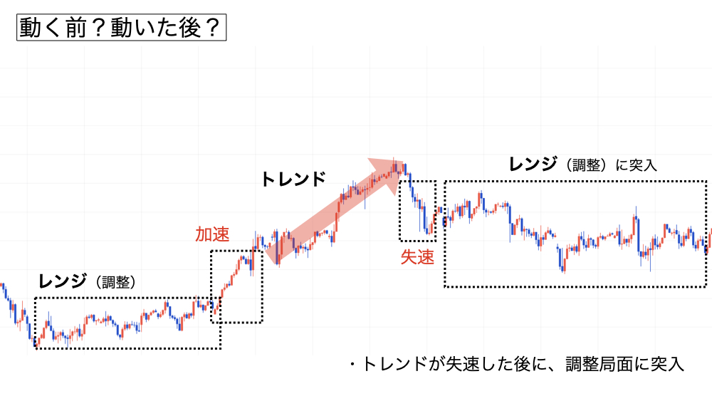 - 相場を見る軸は「動く前」と「動いた後」の2つ